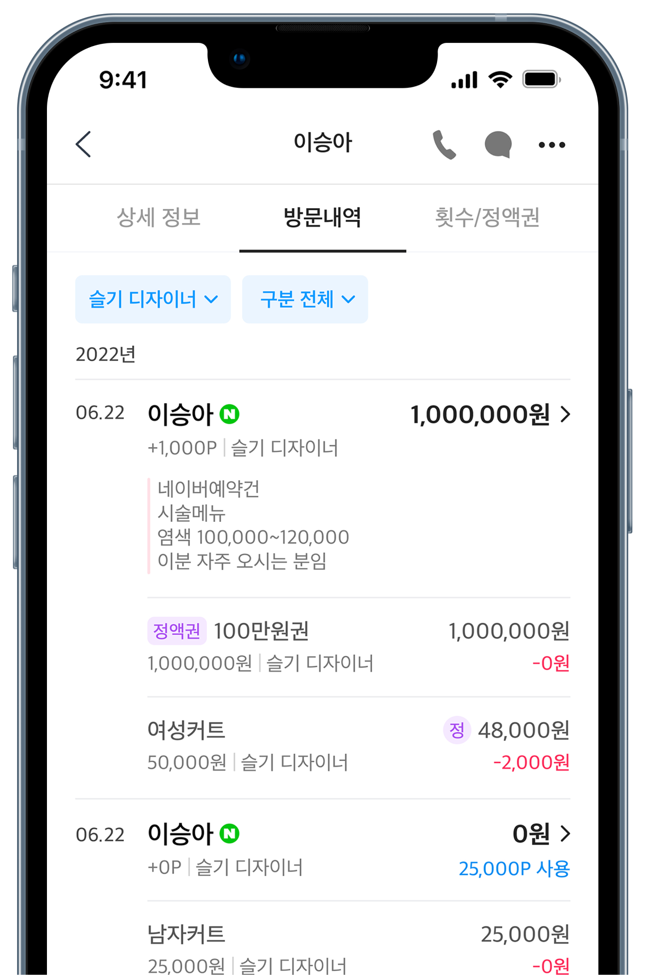 방문내역, 정액권/횟수권까지