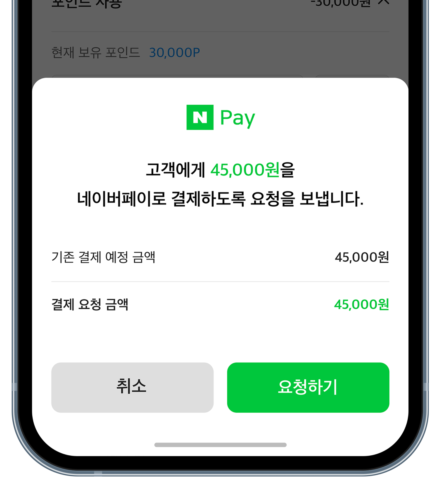 네이버페이로 결제 요청을 할 수 있어요.
