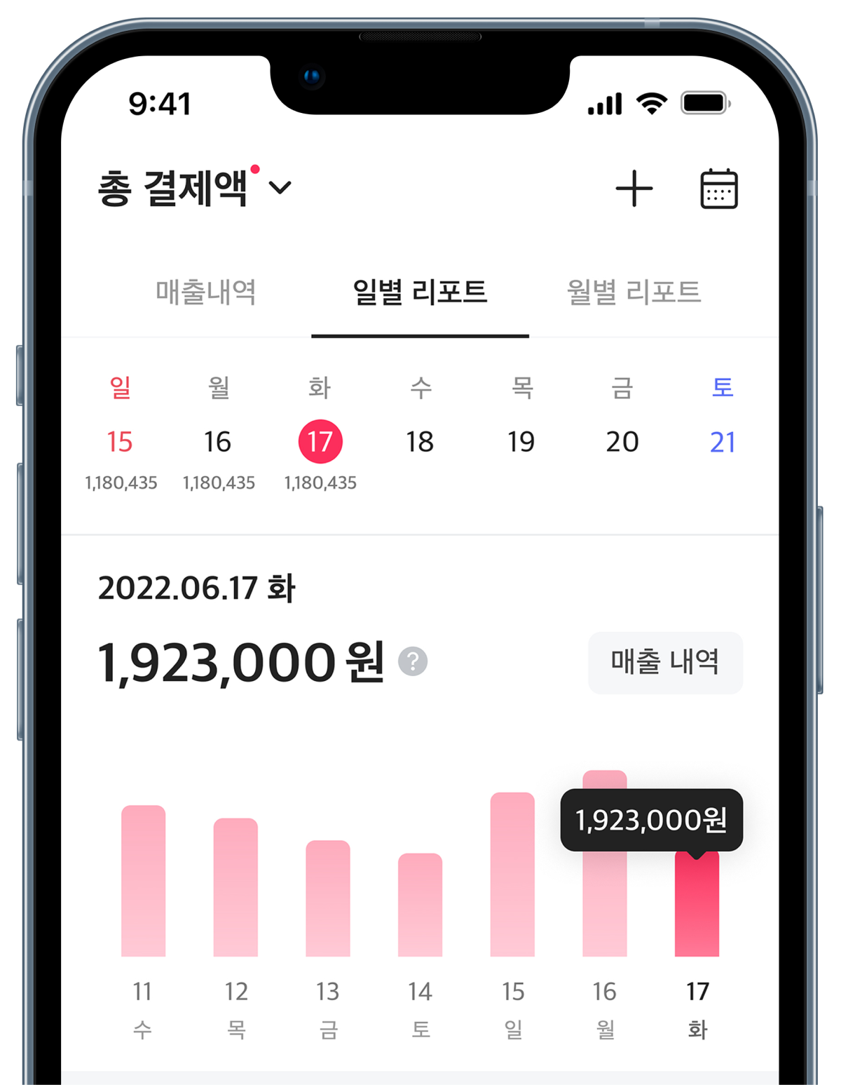 일주일 매출을 한 눈에