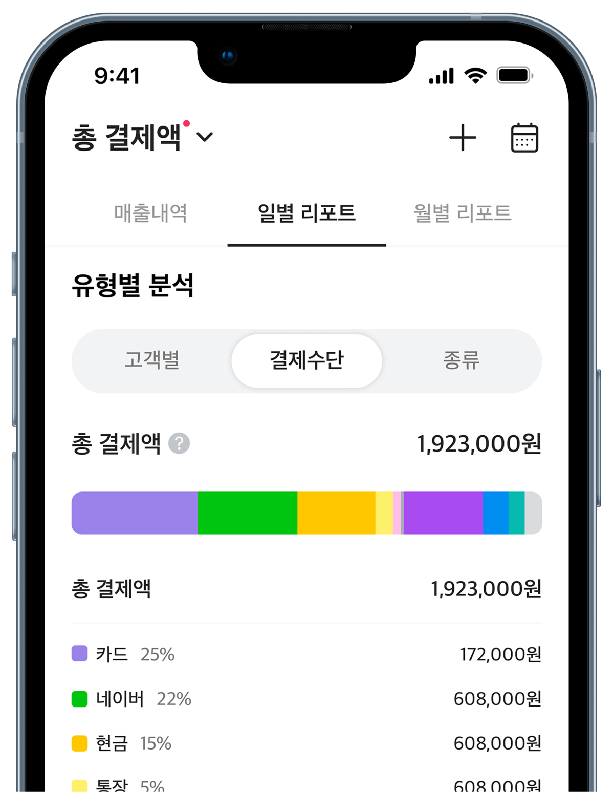 고객별/결제수단/종류별